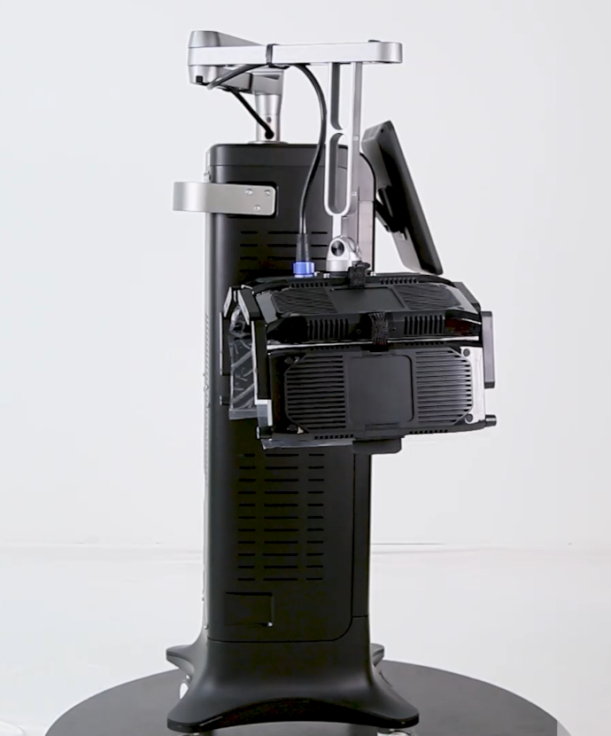 Urządzenie wyposażone jest w 10-calowy kolorowy ekran dotykowy, na którym można wyświetlać parametry zabiegu i logo salonu. Duży obszar zabiegowy (65 cm x 22 cm) pozwala na leczenie zarówno twarzy, jak i ciała. Pięć składanych paneli łukowych można dostosować do potrzeb konkretnego zabiegu. Urządzenie posiada aktywne chłodzenie powietrzem, zapewniające bezpieczeństwo i komfort podczas długich sesji.
